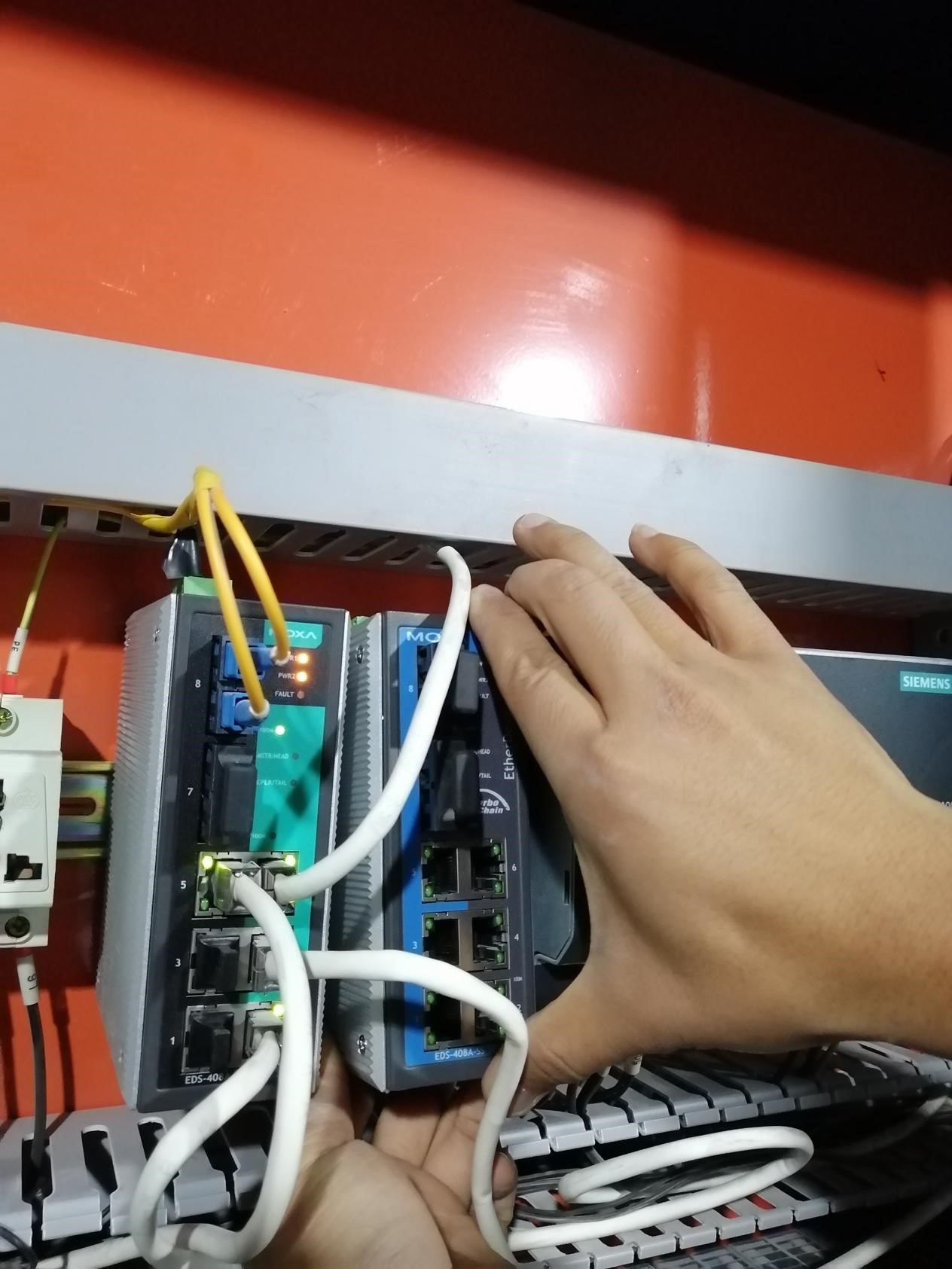 11月14日8:08分西昌藍鼎二期脫硫工業(yè)電腦突然失去控制,頓時無法實現(xiàn)遙測、遙信、遙調(diào)、遙控等操作,時刻面臨重主要設(shè)備跳停引起出口二氧化硫超標排放的環(huán)保風(fēng)險,情況十分危急。電儀組全體火速趕到中控室,檢查原因,查明工業(yè)電腦通信異常,立刻檢查上一級交換機運行狀態(tài),檢查無異常后,根據(jù)經(jīng)驗立刻判斷是PLC柜光纖以太網(wǎng)交換機出現(xiàn)故障, 8:33分經(jīng)過團隊協(xié)作,完成備件更換,中控室工業(yè)電腦通信恢復(fù)正常,成功避免了環(huán)保事故的發(fā)生。