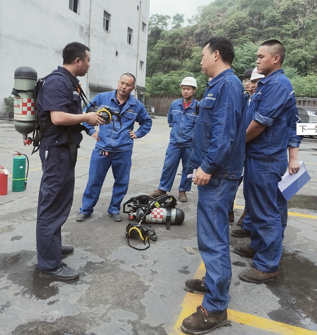 下午3點(diǎn),比賽正式開(kāi)始,空氣呼吸器主要檢驗(yàn)氣瓶壓力、面罩、管路氣密性的檢查及佩戴先后順序及熟練程度以完成時(shí)間進(jìn)行排名;消防水帶則以速度、熟練程度和擺放平衡度進(jìn)行綜合排名。經(jīng)過(guò)幾輪激烈的比賽,檢修班獲得第一名。