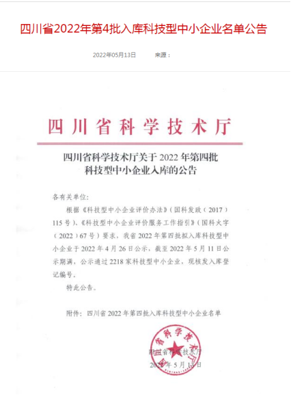 近日,四川藍(lán)鼎新材料有限公司順利通過2022年四川省第4批國家科技型中小企業(yè)認(rèn)定。